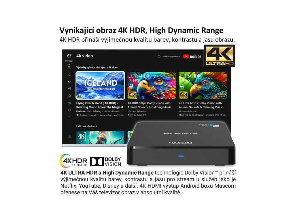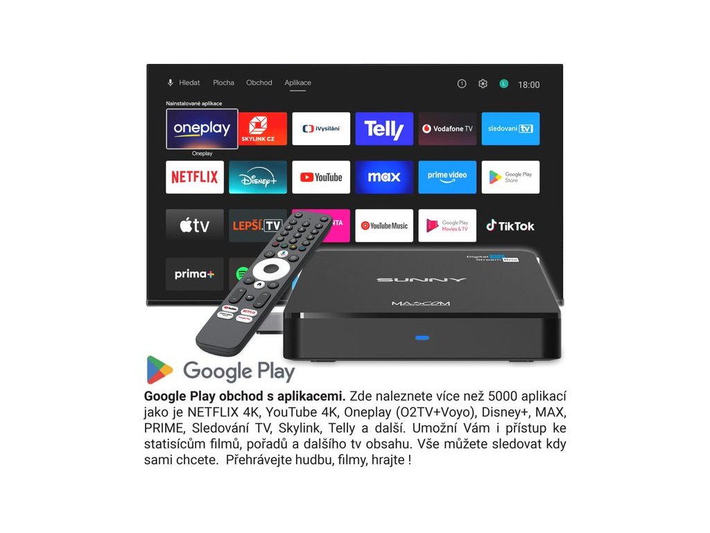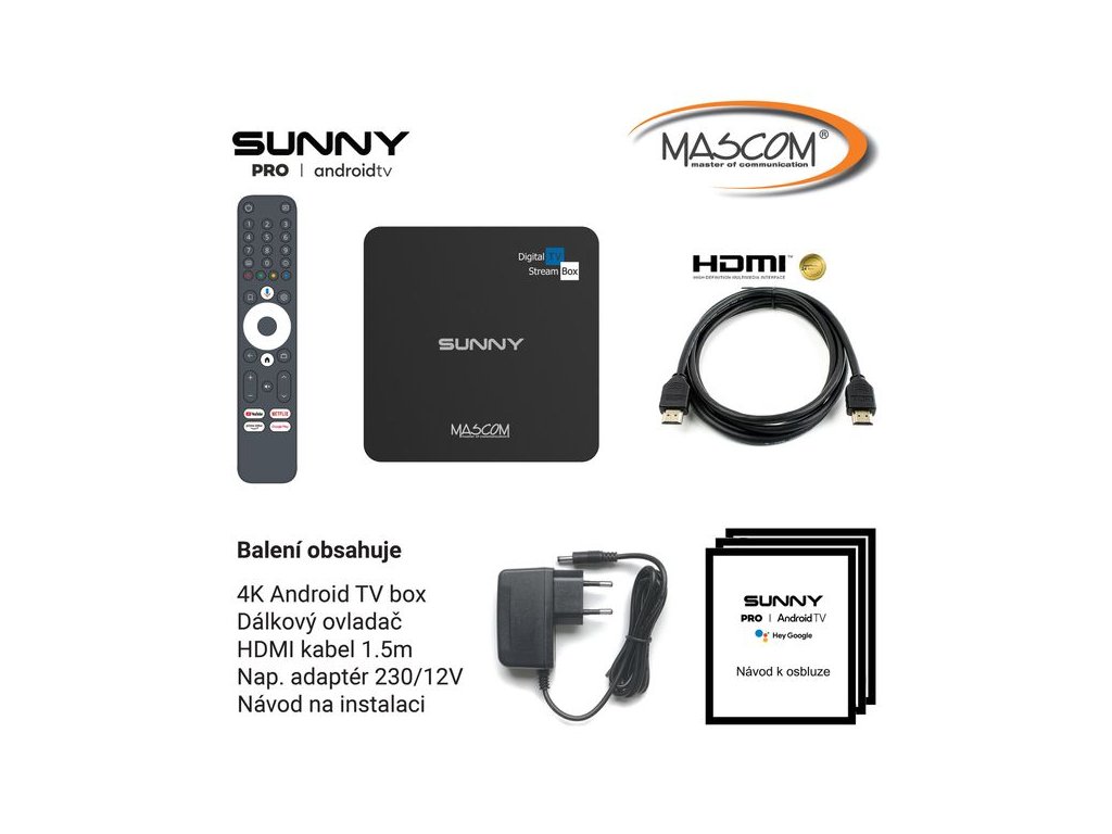 MASCOM SUNNY Android TV12.0 box, 4K HDR, WiFi, BT, ONEPLAY, NETFLIX,..