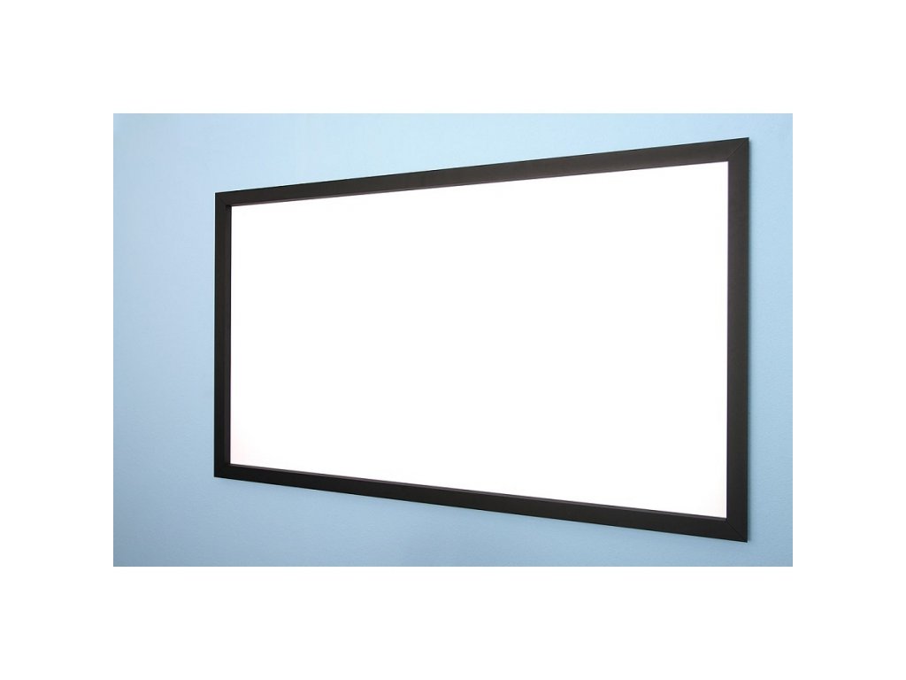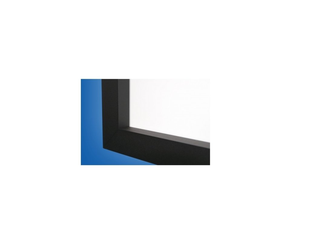 - Projekční plocha vypnutá v černém hliníkovém rámu (50x30 mm) zezadu pomocí patentů